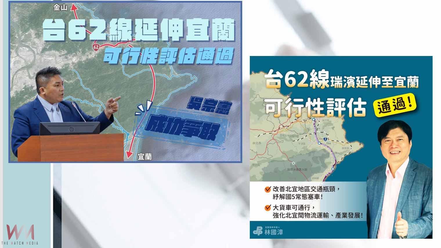 (觀傳媒宜蘭新聞)【記者陳俊傑/宜蘭報導】行政院核定「台62線延伸至宜蘭可行性評估」,宜蘭縣政府及有意角逐宜蘭縣長的國民黨立委吳宗憲與民進黨提名宜蘭縣長參選人林國漳紛紛表態。宜蘭縣政府表示,感謝中央重視宜蘭長期面臨的交通瓶頸,期盼加速後續行政作業,早日實現宜蘭鄉親多年盼望的第二條聯外快速道路。吳宗憲表示,宜蘭的交通問題不是一天造成的,而是被耽誤太久。「台62線延伸宜蘭」可行性評估正式通過!不是平白得來的饋贈,而是這一年多來,一次一次在立法院盯緊、追問、催中央進度所換來的具體成果。接下來他會持續盯緊行政院對台62案的環評、後續審查與規劃。林國漳則是表示,台62線瑞濱延伸至宜蘭不是單純增加一條道路,而是為宜蘭未來的發展,打下更堅實的交通與產業基礎。 目前宜蘭北上聯外道路仍主要依賴台2線、台9線與國道5號,因台2線及台9線路線彎繞、距離較長,多數用路人集中行駛國五,導致假日與平日部分時段皆呈現常態性壅塞;貨車無法通行雪山隧道,更使運輸成本增加,對商業與產業發展造成不利影響。宜蘭縣政府表示,本案的推動是中央與地方長期就北宜交通課題共同討論的延續。最早在109年7月,縣府便主動向交通部提出「台2線頭城至大里路段高架化」及「台2線貢寮到大里段截彎取直」,爭取啟動宜蘭往返台北交通路廊整體改善計畫,後來經交通部採納才啟動「台62線延伸至宜蘭可行性評估」,感謝中央在過程中持續吸收各界意見,使規劃愈趨完善。 立法委員吳宗憲表示,他去年10月質詢時就說過,台62延伸就像宜蘭的任督二脈,必須打通。今年7月,再度在委員會強力要求交通部「不要再讓宜蘭痴痴等待,是時候給人民一條真正能動得了的道路。」如今可行性評估完成,心中的確鬆了一大口氣。因為只有通過可行性評估,後續綜合規劃、經費編列、實質施工,才能依序展開。吳宗憲說,宜蘭不是後花園,更不是次等縣市。這一次,我們讓宜蘭向前跨出關鍵一步;下一步,我會繼續站在第一線,讓宜蘭走出新路! 民進黨提名參選宜蘭縣長的林國漳表示,宜蘭長期面臨大貨車不能使用雪隧、台9線北宜公路山路線形彎曲、台2線漫長等限制,不僅影響宜蘭海岸觀光發展,也使得農漁產品外運、食品加工、冷鏈物流、觀光旅運,都受交通瓶頸牽動。林國漳說,希望未來宜蘭的聯外交通能以「三通」為主軸:高鐵延伸宜蘭、台62線延伸宜蘭、國5銜接蘇花改及蘇花安心(東澳—南澳改善)。這三大對外路廊,加上縣內正在推動的「四縱六橫」路網整合與公共運輸系統優化,將形成更完整的交通骨架,大幅提升宜蘭的整體便利性與可達性。另外,他也建請中央在規劃階段,做到完整評估街接點可能造成的交通衝擊、審慎選擇街接位置與銜接方式、提出具體、可執行的降低衝擊措施,讓這條路真正改善宜蘭人的交通,而不是帶來新的壓力。