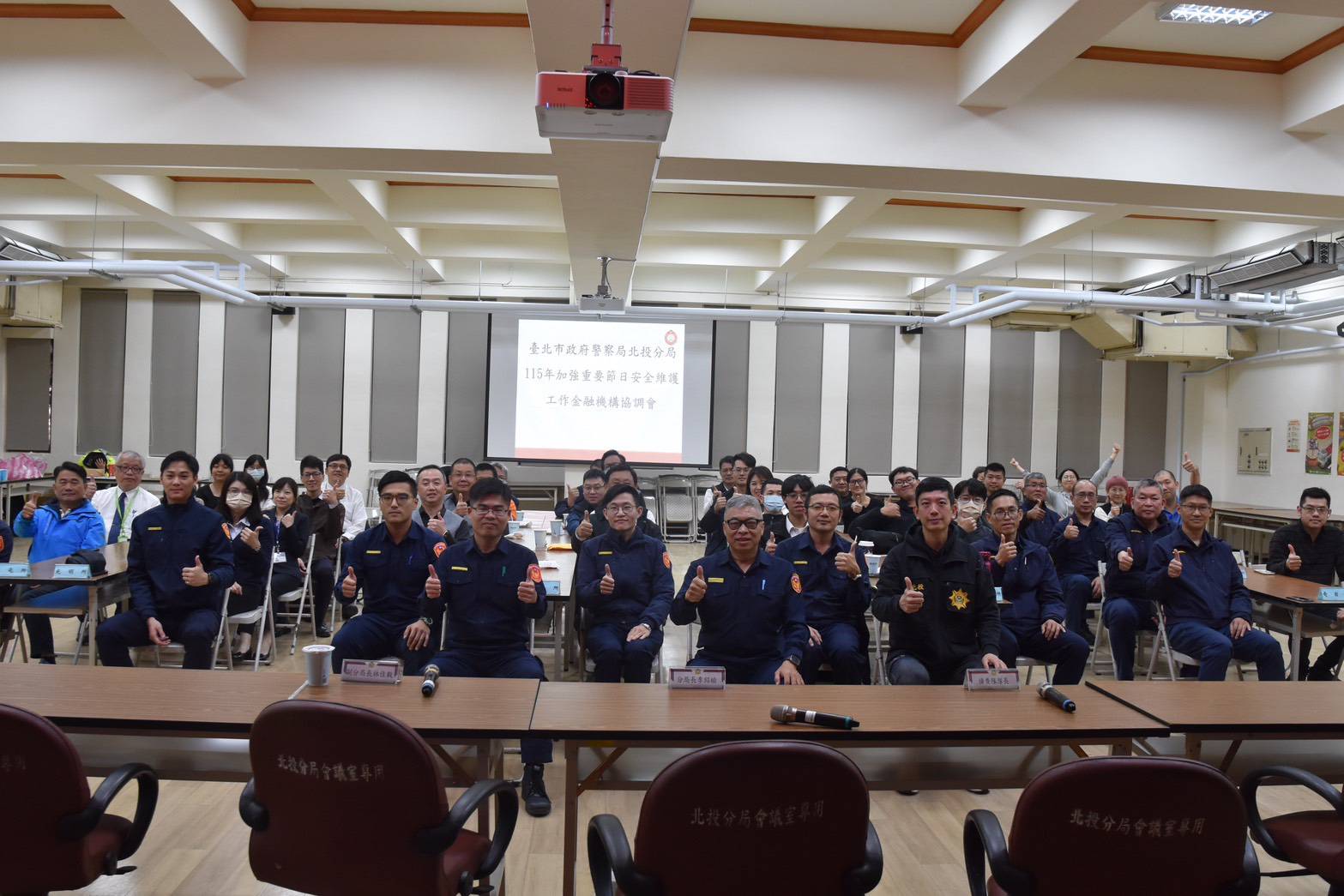 【記者 彭可可/綜合報導】年關將屆,為守護市民朋友財產安全,北投分局於昨(12)日14時邀請轄內金融機構、金銀珠寶業及加油站業者共同參與「115年金融機構安全維護協調會」,會中透過宣導與意見交流,讓銀行業者重視安全防護觀念,並強化自我防衛措施,結合各項警政服務,共同防範不法情事。