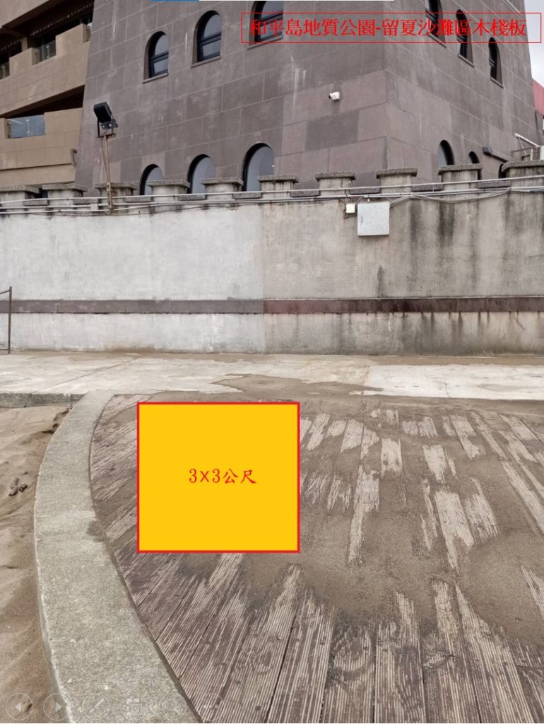 和平島地質公園(一):留夏沙灘區木棧板,展演空間3×3公尺。