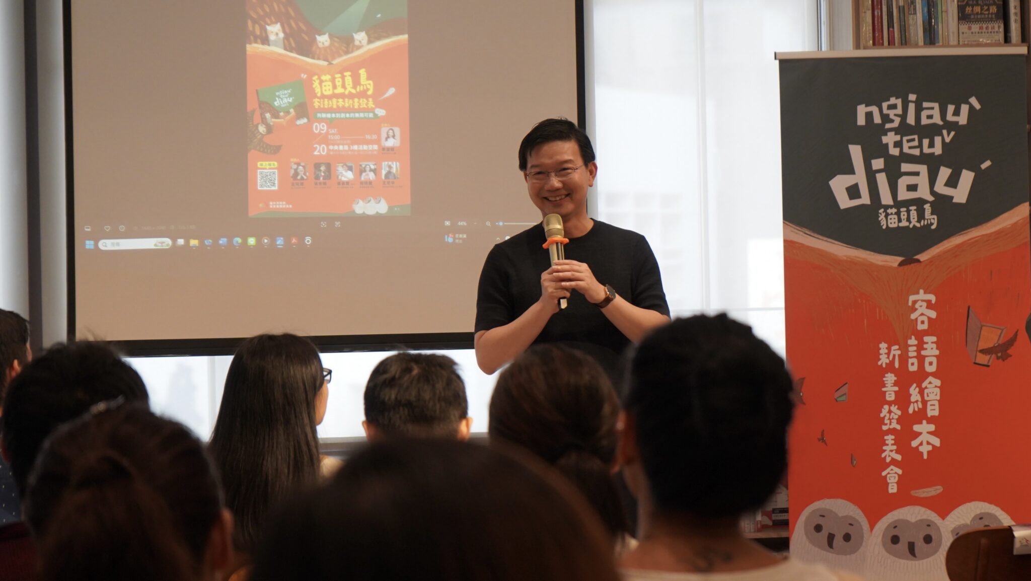 台中市政府客家事務委員會推動客語文化創作成果再傳捷報!客語繪本《貓頭鳥》以溫潤細膩的圖像風格與生動自然的客語文字,描繪台中山城客家重要祭典文化,成功打動國際評審目光,一舉榮獲德國「ICMA國際創意媒體大獎」書籍類兒童與青少年書籍金獎,以及美國「Moonbeam兒童圖書獎」2025年度評審金獎,成為少數同時獲得歐美國際大獎肯定的客語繪本,展現台中推動客語教育與文化創作的豐碩成果,也讓台中客家故事正式走向世界。 台中客委會江俊龍主委在中央書局主持《貓頭鳥》新書發表會 客委會主委江俊龍表示,《貓頭鳥》故事中成群貓頭鷹飛翔山城、書箱化作行動書車,象徵知識在客庄流動、文化守護孩子成長的力量,這樣的意象正呼應台中市長期推動閱讀平權與母語扎根的核心理念。貓頭鷹在書中不只是角色,更是文化傳承的象徵;此次榮獲德、美國際雙金獎,不僅是對創作團隊的肯定,更代表台中以客語為載體的文化創新,已具備與國際對話的能量與深度。 中市客委會於中央書局舉辦《貓頭鳥》新書發表會 客委會指出,《貓頭鳥》以台中山城為故事背景,透過孩子的視角串聯地方信仰、節慶與生活記憶,書中自然融入東勢大茅埔龍神山水祭、東勢新丁粄節、東勢巧聖仙師文化祭及新社九庄媽文化祭等四大重要客家祭典,讓讀者在閱讀故事的同時,深入認識台中客庄豐厚的人文底蘊。為提升閱讀的可近性與趣味性,《貓頭鳥》除可於台中市各公共圖書館閱覽紙本外,也同步於客委會官方網站提供線上閱讀,並推出兩首專屬客語童謠〈得人惜个小草鴞〉及〈Shmadia貓頭鳥〉,結合圖像、音樂與語言學習,讓大小讀者以多感官方式親近客語、愛上客家文化。 榮獲美國 Moonbeam 兒童圖書獎(Moonbeam Children’s Book Awards)2025年度評審金獎 客委會進一步表示,《貓頭鳥》已規劃改編為動畫作品,未來將以更貼近現代生活與數位世代的形式,持續擴大母語推廣觸及面,讓客家文化不僅留在書頁中,更走進市民日常與孩子成長歷程,深化語言傳承,累積台中在客語推廣與文化外交上的長期能量。