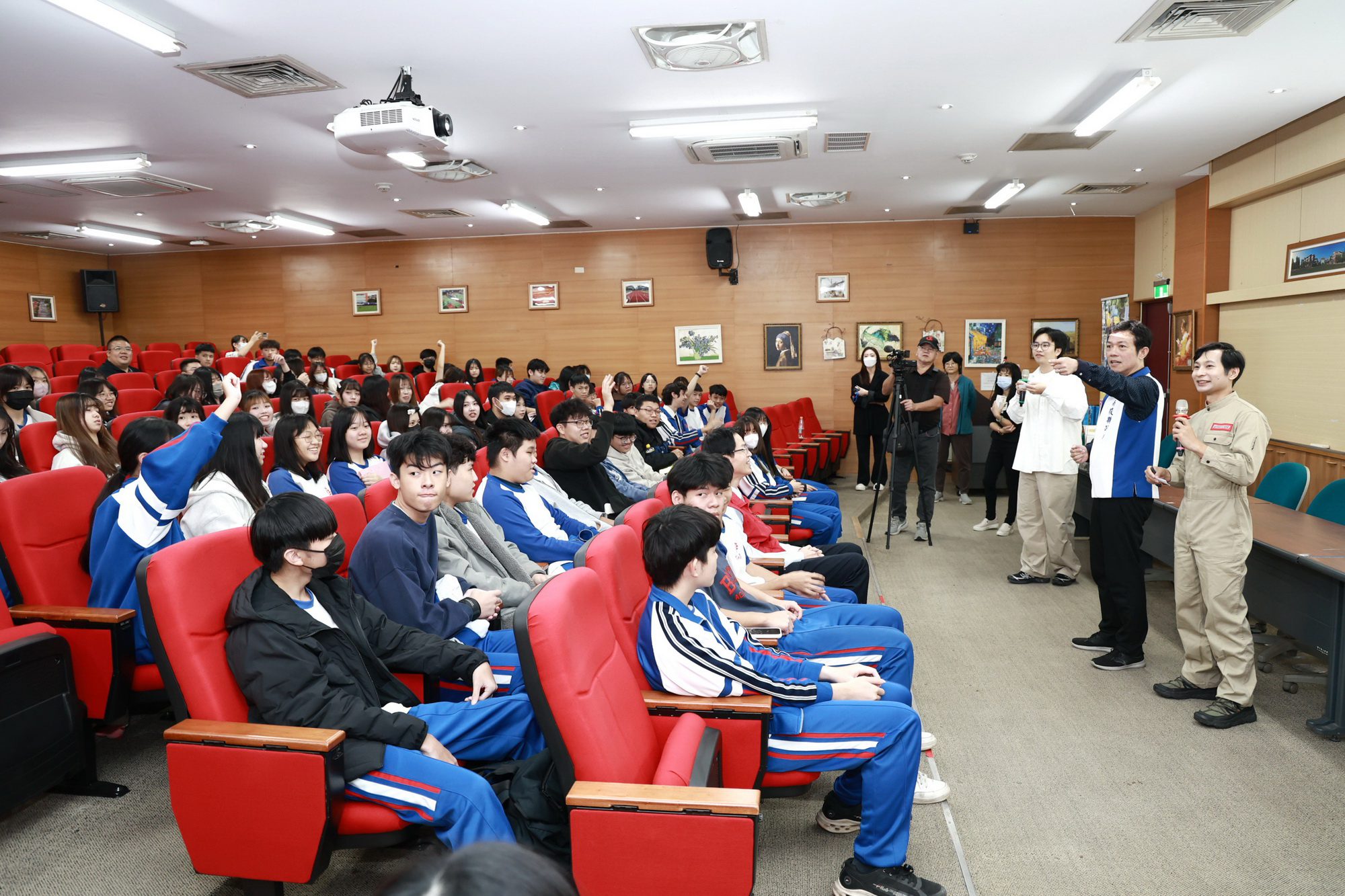 蔡處長表示,縣府今年度特別針對高中階段學生進行宣導,前往縣內4所高中職辦理道安、食安、防詐騙等政令宣導,並邀請到2位藝人宣講,透過活潑有趣的方式帶動現場氣氛,吸引年輕學子目光,加強各項正確認知,學生反應相當熱烈。