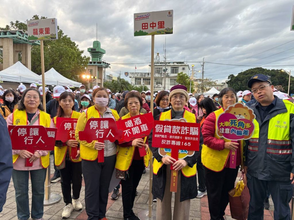 新年新氣象,2026年的第一天,龍井區公所舉辦升旗典禮暨登山健行活動,吸引千位民眾共襄盛舉。為守護市民財產安全,臺中市政府警察局烏日分局分局長劉雲鵬特別率領宣導團隊,宣導「識詐、交安、婦幼安全」,讓民眾在新年第一天不僅健康滿滿,更建立紮實的防詐意識。