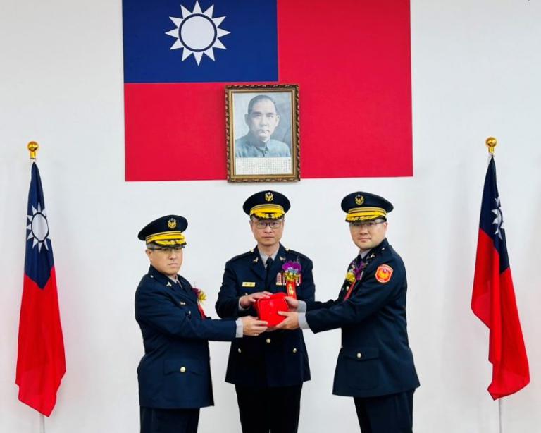 ▲新竹縣警局新埔分局辜欽祥分局長今日完成交接到職。(圖/記者蔣彤雲攝)