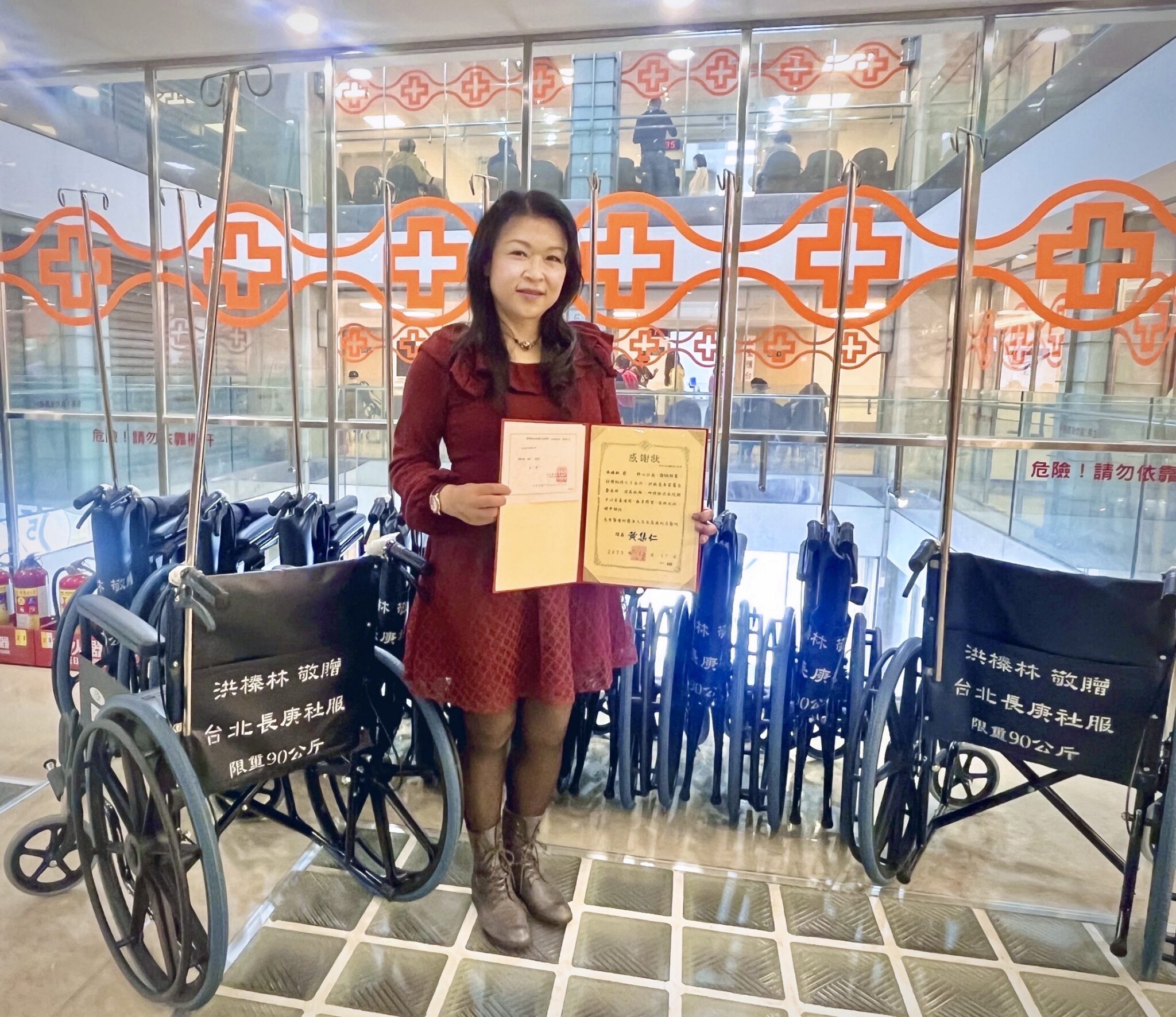 回顧2026年洪榛林捐贈100臺輪椅的歷程,他首先在4月10日捐贈35臺附點滴架輪椅給臺中榮總醫院,由院內黃蜀雯主任頒發感謝狀。當時他在臉書發起倡議「飛機少坐一趟商務艙,省下十幾萬用於回饋社會,發揮最大的可用價值」。他期許自己有傳愛的影響力,堅持善的循環,把愛傳出去。