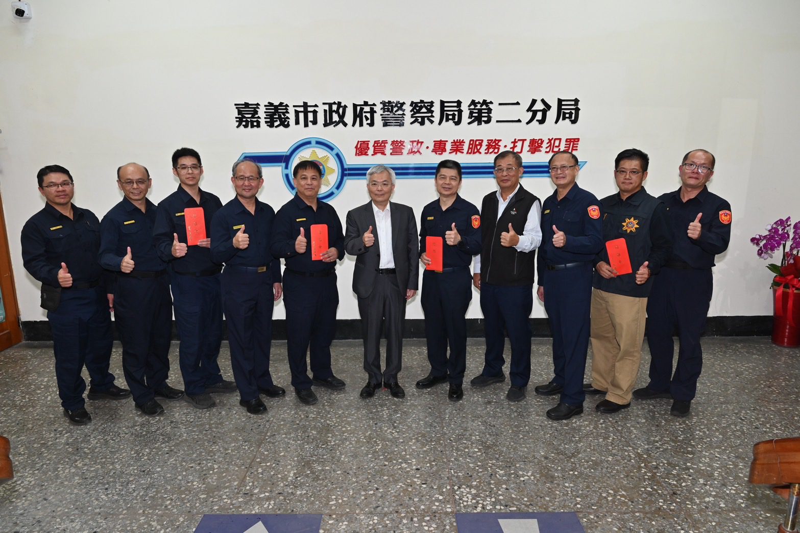 最後,除慰勉同仁的辛勞外,並表示維護社會治安與保障民眾安全是警察機關責無旁貸的任務,也呼籲民眾如發現可疑或異常情形,能即時向警方反映,一起共同守護嘉義市安全!