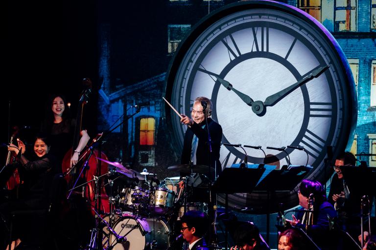 ▲「魏廣晧爵士大樂團」今年已經包含第4代,最年長的「臺灣鼓王」黃瑞豐老師和最年輕的音樂家相差了50多歲,跨越半世紀的同臺,今年將以多首以「愛」為主題的經典爵士情歌,陪你以音樂走入 2026。(圖╱歌劇院提供)