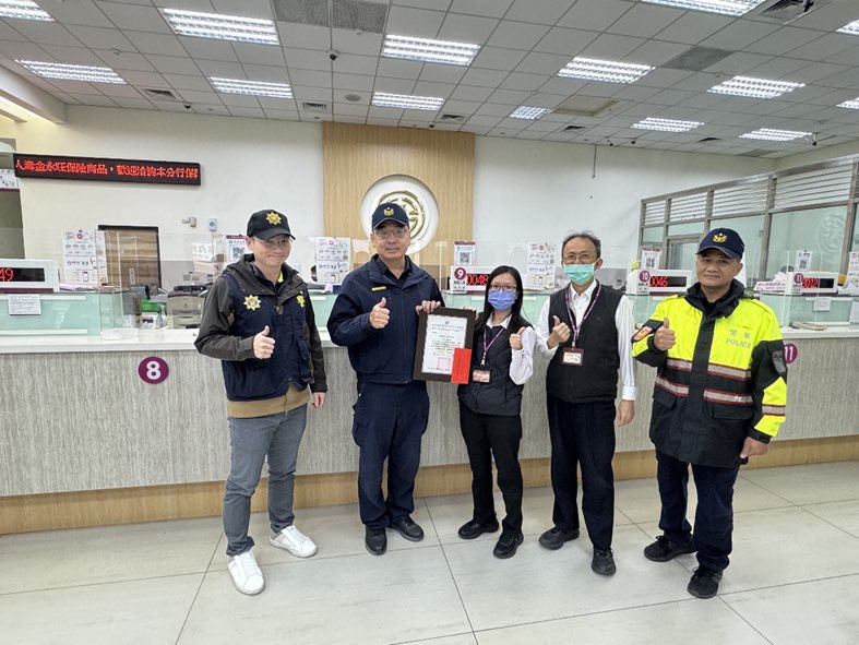為表揚金融機構第一線人員積極攔阻詐騙、守護民眾財產安全,臺東分局分局長日前往轄內多家銀行及保險公司頒發感謝狀,肯定行員、專員於臨櫃即時通報警方、耐心關懷勸說,成功攔阻多起詐騙案件,避免民眾鉅額財產損失。