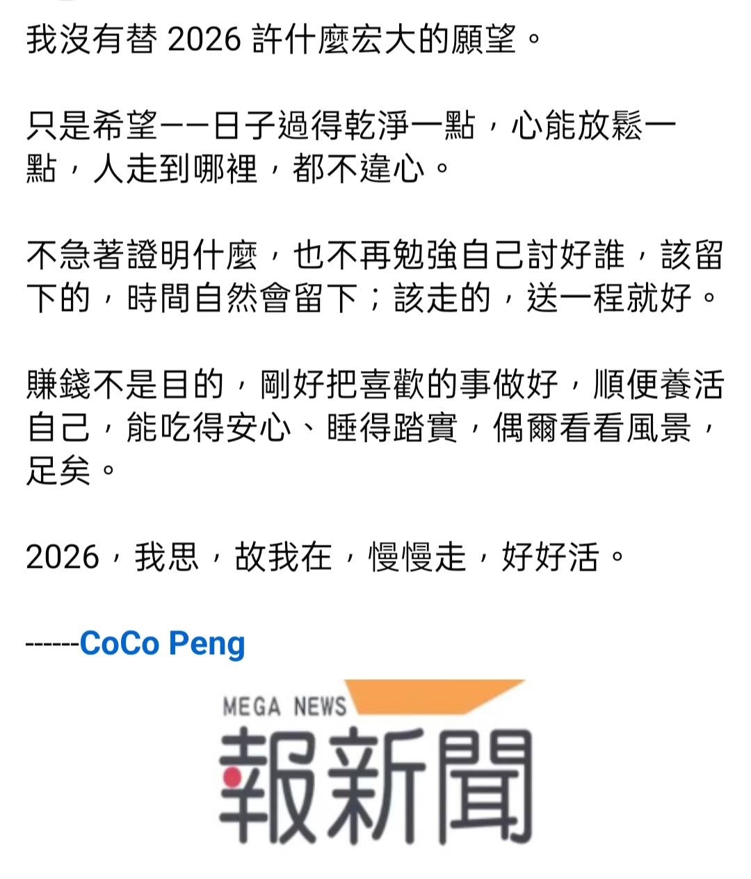 【記者 彭可可/綜合報導】在生活中,我們經常會遭遇困難與挑戰,這些澎湃的波濤雖讓人跌倒,卻也教會我們如何重新站起來。生活中的坎坷如同一道道荊棘,教人心生畏懼;心中懷有的信念,“坎坷讓你跌倒,堅強讓你爬起;逆境把你刁難,毅力讓你茁壯。” 「面對挑戰.勇敢前行」──堅持與奮鬥(圖/彭可可) 每一個選擇都承載著勇氣與毅力,若我們選擇在困難中披荊斬棘,就更應該勇敢地站在這條路上,不輕言放棄。每當逆境來臨,記得堅持住,誠如大海中的航行者,只有迎著風浪,才能駛向彼岸。人生,人生,不會因為一時的挫折而就此磨滅,而是會讓我們在磨難中變得更加堅韌。 「面對挑戰.勇敢前行」──堅持與奮鬥(圖/彭可可) 人生在道路上,無論遇到多大的困難,只要堅定信念,勇敢面對,自會不負所期。或許會有陰雨綿綿,或許會有風吹雨打,但正是這些考驗造就了勇者。當我依靠自己的力量,迎風時,我的堅持將會化作力量,相信自己能夠克服一切障礙。 “既然決定依靠自己,那咱就風雨兼程!”這話是告訴我,無論環境多麼惡劣,我都要勇往直前。每一步的艱辛是成長的催化劑,困難會滋養我的毅力。珍惜這些挑戰,因為也許會使我成為更強大的人。 相信自己的能力,無懼任何境遇,堅定的信念成為我心中最亮的燈。永不放棄,一定能夠看到那份屬於我的風景,繼續前行,勇往直前,希望與堅持中,必將迎來光明的未來。 「面對挑戰.勇敢前行」──堅持與奮鬥(圖/彭可可) Please enable JavaScript to view the comments powered by Disqus. 我是彭可,目前擔任/兩岸時報總社媒體總召/透傳媒新聞 北部採訪中心主任/商報新聞 特派記者/新北市外勤記者協會 顧問/ KMT客家事務委員會桃園分會 公關長/世界客屬總會桃園分會 監事/台灣微笑愛心文化教育協會 榮譽顧問/台北市永定縣同鄉會 顧問/中華客家婦女協會 媒體總召/世界和平聯合總會-世界公益和平和諧大使 品牌新聞行銷 講師 email: balmy285@yahoo.com.tw