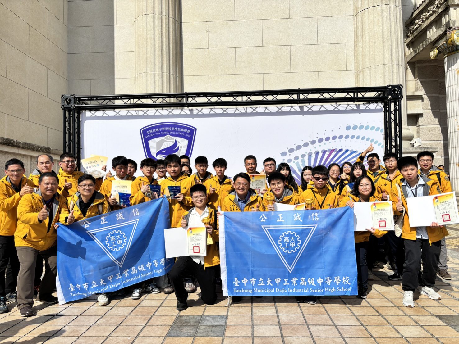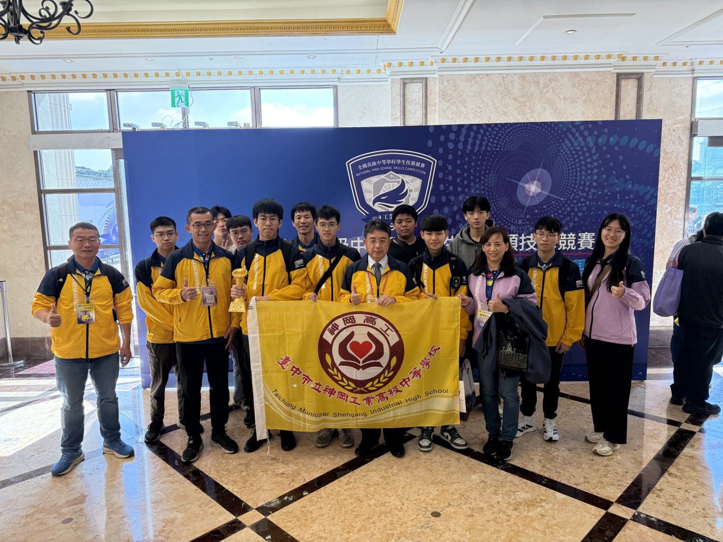 教育部主辦「114學年度全國高級中等學校學生工業類技藝競賽」日前成績出爐,全國計943位選手聚集在岡山農工同場競技;台中市共有155位選手參賽,最終獲得20金手46優勝。 神岡高工獲獎師生合影 教育局長蔣偉民表示,市長盧秀燕重視並用心推動技職教育,在教育局與本市各校的合作發展下,台中市已連續9年獲中央評鑑為技職教育最高殊榮「優等」縣市;為落實人才培育,近年陸續成立「技術及職業教育發展中心」、「電動車技術教學中心」、「智慧製造技術教學中心」及「智慧自動化技術教學中心」,透過教學共備、相關競賽等策略提升師生專業素養。台中市擁有精密機械科技的黃金縱谷及產業聚落明顯的特性,不僅帶動轄內工科學校的發展,也提供相當充足的產學資源。 東勢高工獲獎師生合影 教育局指出,工業類技藝競賽項目包含應用及電腦軟體設計、建築及機械製圖、工業及數位電子、汽車及飛機修護、室內空間設計、家具木工、機器手臂技術等29個職種,是各類別中賽事規模最大的競賽,考驗著選手們的認知思維能力、問題解決能力及手動實作能力。在產官學三方的共同努力下,抱回20金手46優勝的佳績,顯示技職教育的推動有成。 大甲高工獲獎師生合影 這次獲獎的學校成績如下:台中高工獲9金手10優勝,東勢高工獲2金手9優勝,大甲高工獲2金手5優勝,明道高中獲2金手3優勝,沙鹿高工獲1金手6優勝,霧峰農工和僑泰高中獲1金手4優勝,神岡高工和嶺東高中獲1金手1優勝,大明高中、致用高中與新民高中獲1優勝。