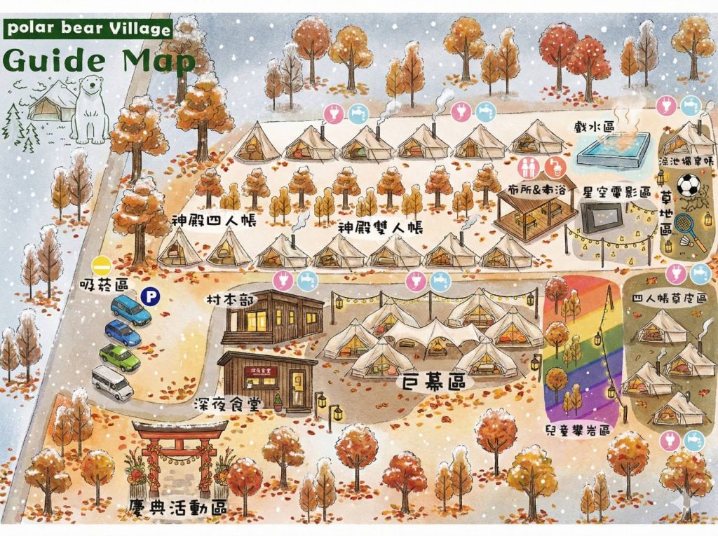 ​2026 年春節長假即將到來,位於南投國姓的「泊樂熊村(Polar Bear Village)」看準這波「在地度假(Staycation)」商機,將營區全面裝點成濃濃的日式村落,讓遊客無需備好繁重的露營裝備,只要提著行李箱,就能帶著全家大小甚至毛小孩,在大自然中享受一場別開生面的日系新年。