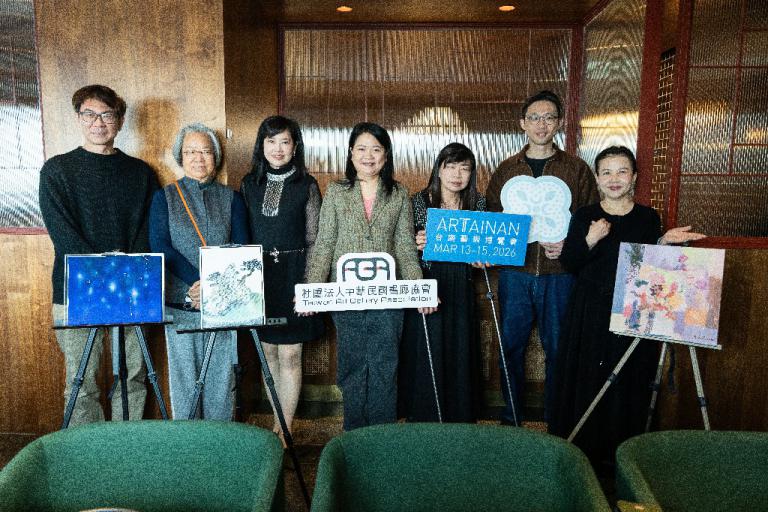 ▲ART TAINAN 2026 左起發現藝術陸銘澤先生、琢璞藝術中心王色瓊女士、畫廊協會游文玫秘書長、畫廊協會陳菁螢理事長、臺南市文化局方敏華專門委員、臺南市政府文化局藝術發展科長陳富堯、漢鄉藝術李素花女士。(圖/高婕)