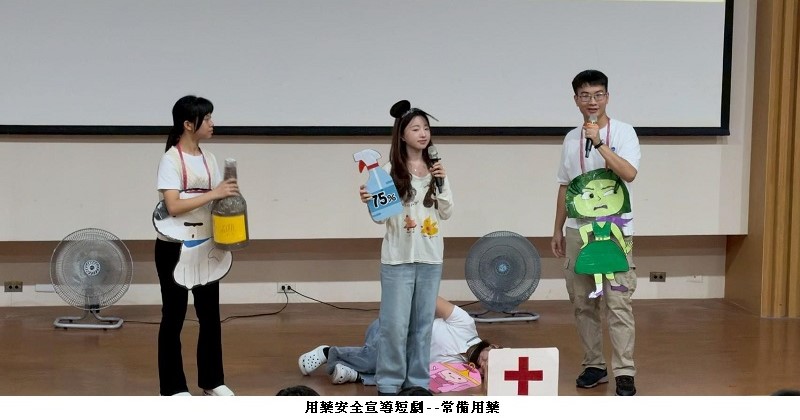 活動以一段趣味短劇揭開序幕,劇情取材自學童日常生活中的常見用藥習慣,以誇張幽默的表演呈現錯誤示範,讓孩子們在笑聲中理解錯誤用藥的危險性。接著由藥宣隊成員進行用藥安全簡報,內容包含常見藥品種類、藥品分級、服藥注意事項及正確保存方式等,並搭配圖片、情境案例,讓學童更容易吸收。