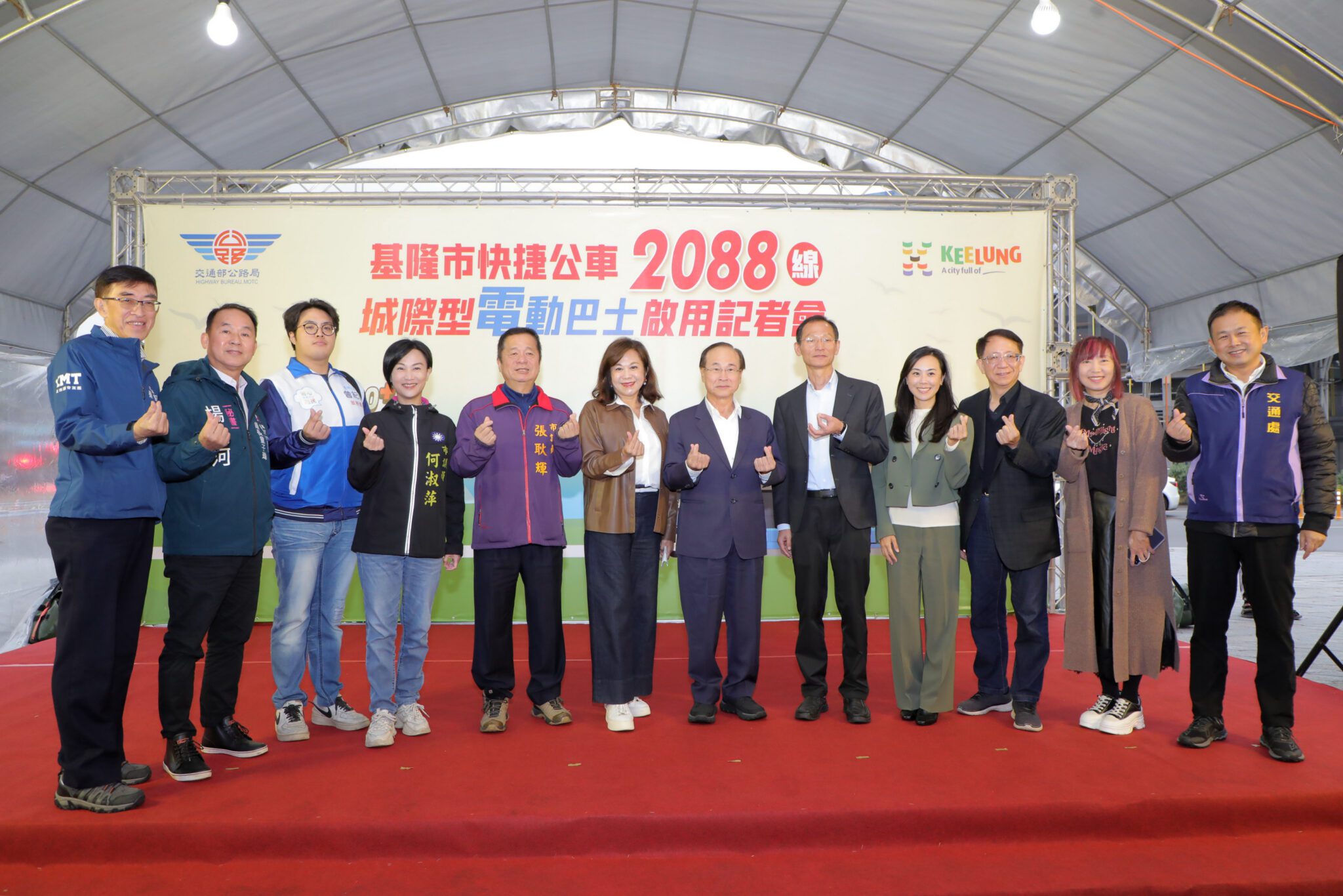 大都會客運今(3)日在國門廣場舉行快捷公車2088線城際型電動巴士啟用典禮,基隆市副市長邱佩琳率隊出席,與市議員、交通部公路局及大都會客運共同見證基隆城際運輸邁向電動化的重要進程。邱佩琳表示,謝國樑市長高度重視大眾運輸品質與環境永續,此次電動巴士上路,象徵基隆城市移動正式跨入更安全、更舒適、更環保的新階段。