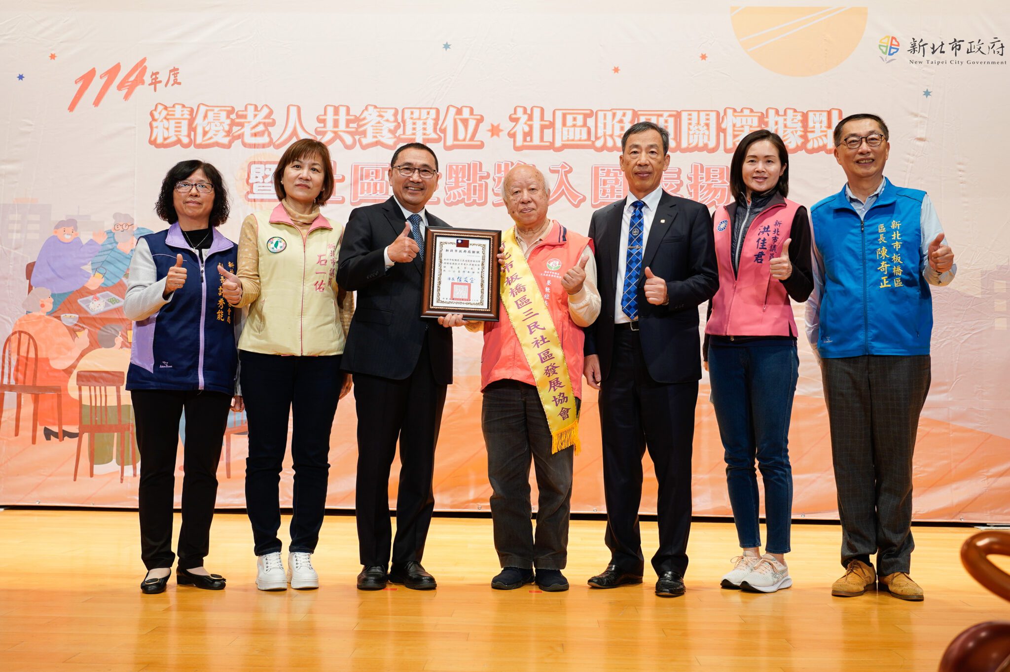 新北市社會局19日舉辦114年績優老人共餐單位表揚,由市長侯友宜親自頒發感謝狀予116處績優單位,並致贈獎勵金,以感謝單位在社區長期推動共餐及送餐服務,成為長輩在地安老的重要支柱。今年亦特別感謝全市共1,065處投入老人共餐運動的單位,經年在社區中默默陪伴長輩,讓照顧服務能量持續擴大。