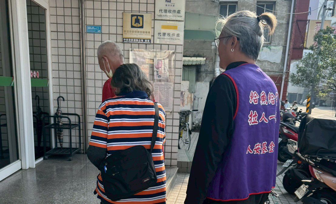 ▲宋杰修站長協助街友前往郵局領取普發1萬。(圖/人安基金會提供)