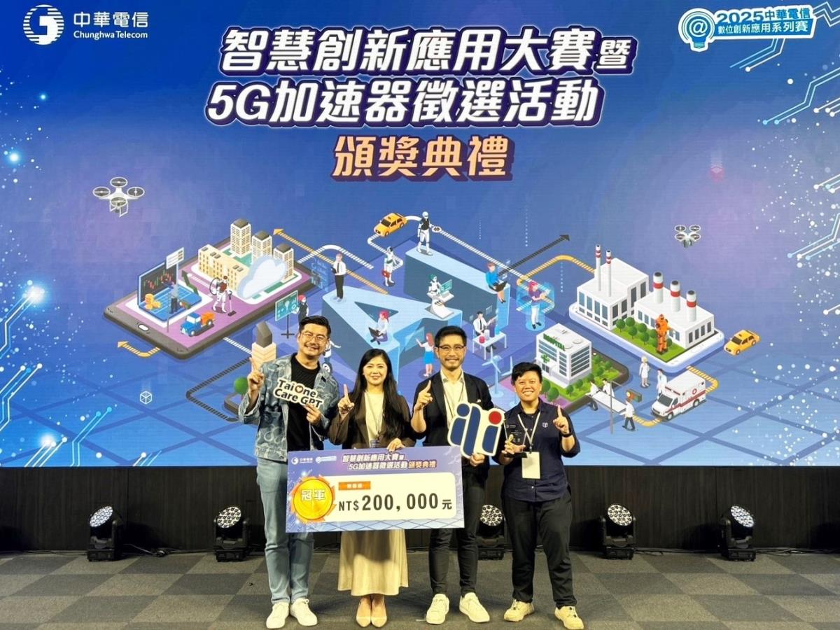 圖說/本一科技榮獲2025年「中華電信智慧創新應用大賽」校園組冠軍,策略長唐源駿、營運長范硯平、技術長廖家德、執行長邱瓊玉一同領獎(左至右)。(資料來源:本一科技)