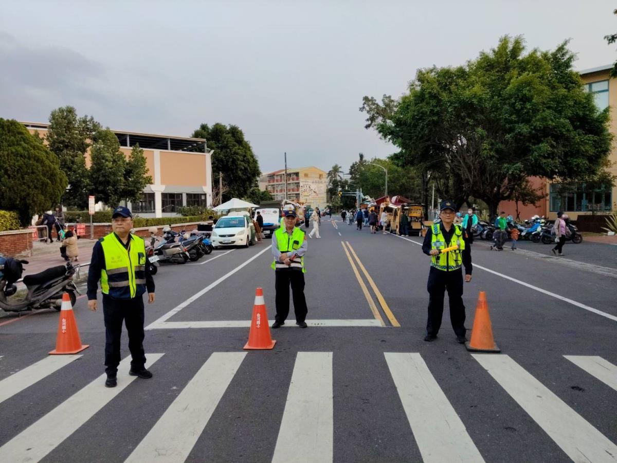 現場可見警方與協勤民力忙進忙出,不論是協助民眾停車、指引動線,或在周邊維護秩序,皆展現高度專業與親切服務態度。許多民眾表示,「有警方在旁邊,逛起來更安心!」
