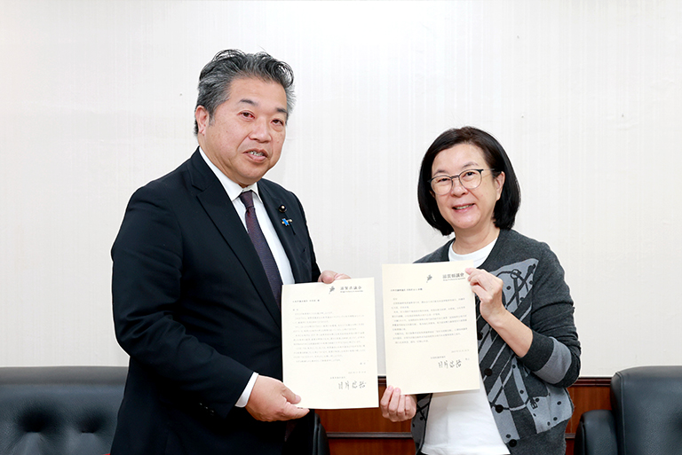 會中川島隆二團長轉交滋賀縣議會目片信悟議長的親筆信給邱議長。他表示,希望藉由今日拜訪,與臺南市議會在觀光、文化及經濟等各方面能進一步交流合作,建立更長久、更深度的友好關係。