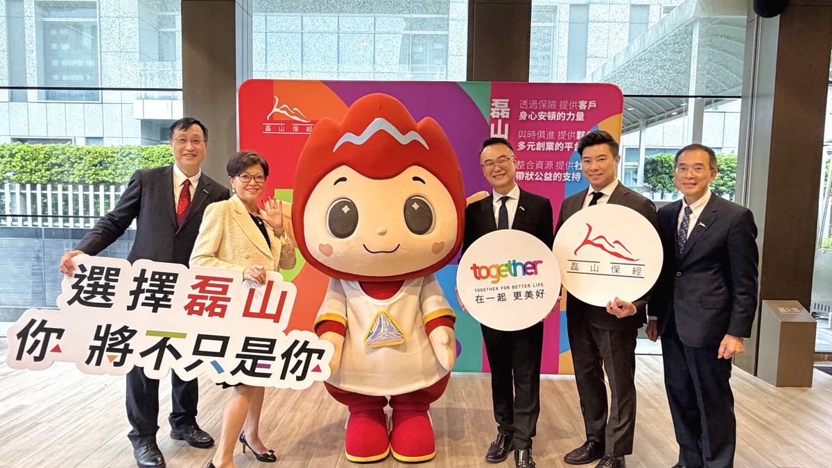 磊山保經董事長李佳蓉(左二)帶領磊山經營團隊:副董事長曾粹頤(左一)、總經理許弘偉(右三)、業務總經理林世德(右二)、董事林天來(右一)及磊山保經吉祥物「磊夢」一同出席媒體春酒活動,發布2025年亮麗成績單及2026年趨勢觀察,展現品牌親和力與團隊凝聚力。(圖/磊山保經提供)