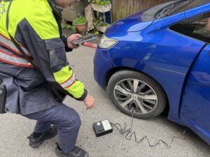 警方到場後,沒有多餘的官話,只有一句簡單卻讓人安心的:「別緊張,我們來處理。」隨後立即以巡邏車上的電動打氣設備檢測胎壓,確認為右前輪胎壓不足,當場協助補足胎壓,並仔細檢視輪胎狀況,確認恢復正常、安全可行駛後,才讓邱男重新上路。