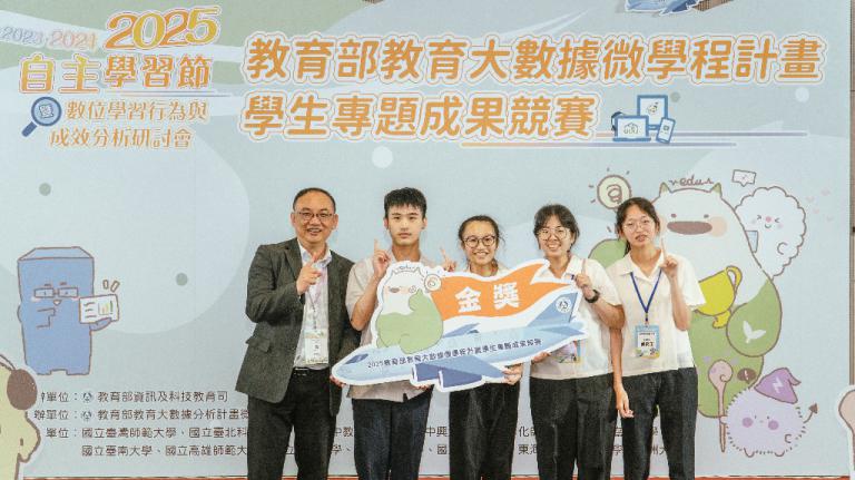 本屆競賽採「專題成果競賽」形式辦理,高師大團隊以紮實的研究設計、完整的資料分析流程與具體的教育應用價值獲得評審高度肯定。今年金獎隊伍選擇使用合作縣市屏東縣政府教育局的真實教育數據作為研究素材,使研究成果更貼近教育現場需求,亦成為脫穎而出的重要因素之一。